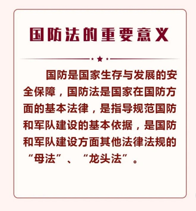 公民的“国防义务”是《宪法》以及《国防法》赋予公民的神圣职责,由以下六方面组成: