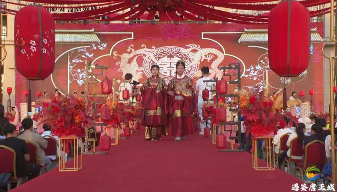 活动现场处处浸润着中式美学韵味,新人们身着绣工精美的传统礼服,在亲友与观众的见证下,依次完成三拜礼、结发礼、合卺礼、执手礼等四大经典中式婚礼仪式,每一个环节都承载着深厚的文化寓意。三拜礼中,新人向天地与彼此躬身,传递对自然的敬畏与对伴侣的珍视;结发礼上,双方剪下一缕青丝相缠,寓意“结发为夫妻,恩爱两不疑”;合卺礼时,二人共饮一卺酒,象征此后人生甘苦与共;执手礼间,双手相握的温度里,是对婚姻责任与担当的郑重承诺。