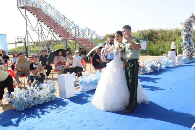 婚礼仪式落幕,新人纷纷来到签名墙前签名、合影,大家纷纷表示,要以实际行动传承兵团精神和胡杨精神、老兵精神,积极投身师市高质量发展实践。