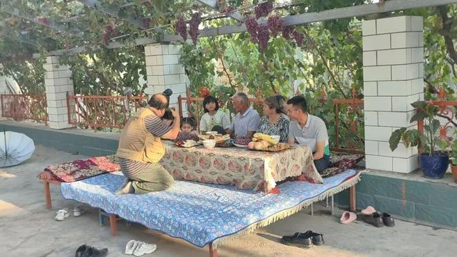 拍摄现场,摄影家们或蹲守庭院角落、或漫步花木之间,用镜头捕捉“美丽庭院”的多面之美:他们对准爬满墙头的蔷薇、缀满枝头的葡萄,定格“花满院、果飘香”的生态意趣;记录女主人弯腰修剪月季、抬手采摘葡萄的瞬间,让指尖拂过枝叶的轻柔、收获果实时的笑意,为影像注入生活温度;还着眼墙角整齐码放的老农具、窗台上错落有致的多肉盆栽,将庭院里的“小精致”化作可触摸的生活质感。“以前总觉得自家院子就是‘过日子的地方’,没想到在镜头里这么美!” 八十六团庭院主人李姐看着取景器里的画面笑着说,而摄影家们不仅“拍美景”,更“传心意”。每一张照片都在诉说:“美丽庭院”不只是“颜值担当”,更是职工家庭用心经营生活的生动见证。