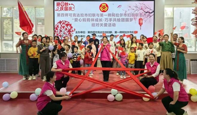 9月27日下午,由一师阿拉尔市妇联与四师可克达拉市妇联主办的“爱心妈妈伴成长·巧手共绘团圆梦”结对关爱活动,在十六团新开岭镇举办。此次活动通过爱心结对、互动游戏等形式,为困境儿童送去党委和社会的温暖,传递优良家风家教理念。十六团妇联爱心妈妈、结对儿童、志愿者等共计70人参加活动。