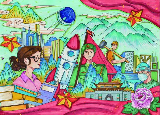 马晨露—家国奋进图—第二师三十八团学校八年级四班