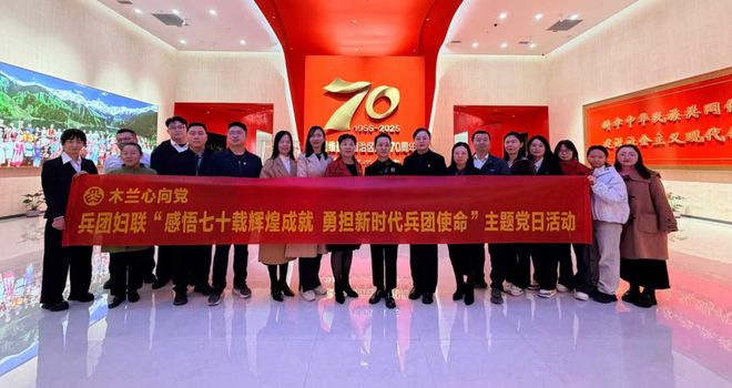 为深刻感悟新疆维吾尔自治区成立70年来的沧桑巨变与辉煌成就,进一步强化“兵”的意识、彰显巾帼担当,10月23日,兵团妇联党支部组织全体党员赴乌鲁木齐六馆一心参观新疆维吾尔自治区成立70周年主题成就展。