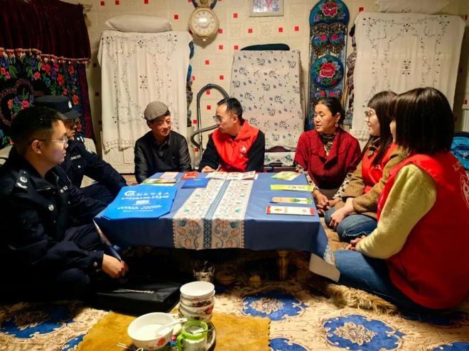 如今,志愿服务不仅在城市开展,也逐渐延伸至团场牧区。近日,七十九团“马上解忧”志愿服务队骑马穿梭在草原,将政策法规送到牧民家中。在牧民库莱西·阿卜杜如苏力家,团场志愿服务队队员们用“家常话”解读政策,记录牧民的诉求,并指导他们安装反诈APP。