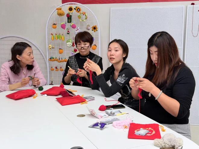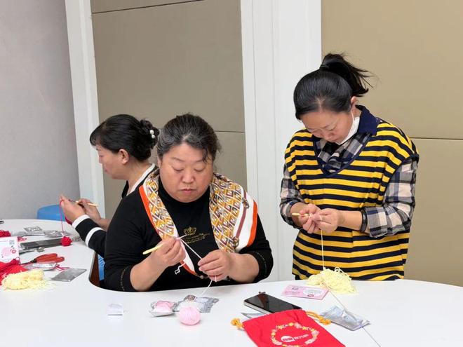 妇女姐妹们听得认真、学得投入,遇到不懂的地方就主动向老师请教,或是与身边的伙伴交流经验。手指翻飞间,原本零散的毛线渐渐有了雏形,姐妹们专注地钩织着一朵朵小花朵,每个人的脸上都洋溢着专注而温暖的笑容。“能亲手为孩子们做些小礼物,感觉特别有意义,希望这些小小的花朵能让他们感受到我们的心意。”参与活动的王女士一边编织一边笑着说。