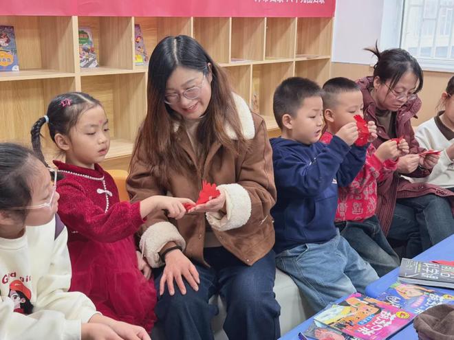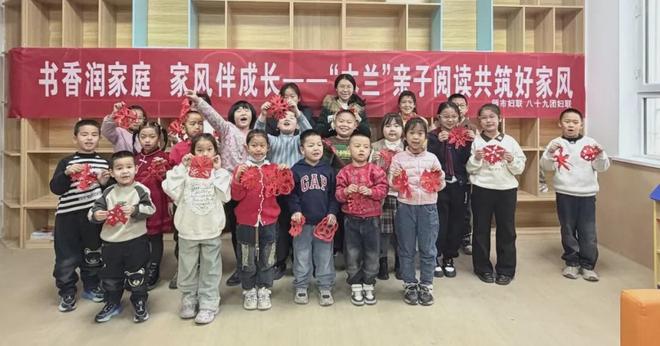 阅读分享结束后,趣味十足的剪纸体验活动接踵而至。巾帼志愿者耐心讲解剪纸的基本技巧和注意事项,完成简单的窗花图案造型。家长们纷纷化身“得力助手”,与孩子默契配合,折、剪、刻、撕,忙得不亦乐乎。一张张彩纸在亲子间的协作下,变成了一个个精致可爱的剪纸作品。孩子们举着自己的成果,脸上洋溢着满满的成就感。此次剪纸活动不仅锻炼了孩子们的动手能力和创造力,更在协作过程中培养了家庭凝聚力,让家风在实践体验中进一步扎根。