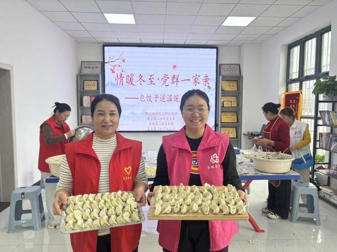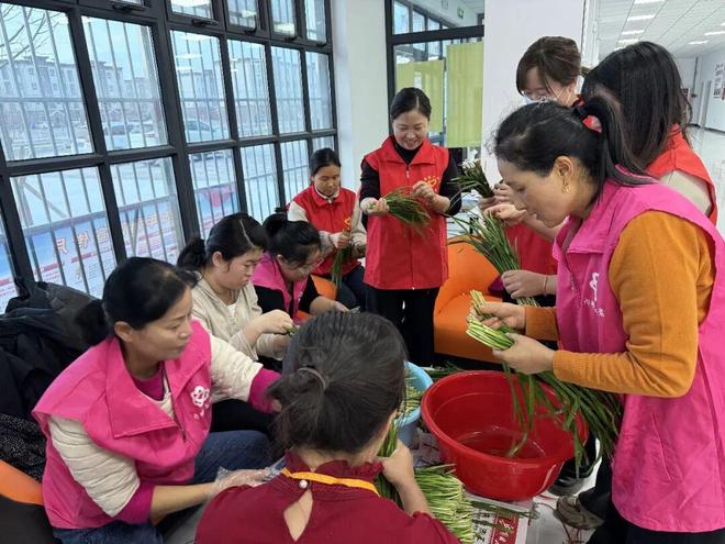 活动现场暖意融融,巾帼志愿者们早早备好面粉、馅料、案板等食材工具。大家分工协作,和面、擀皮、包馅有条不紊,欢声笑语间,一个个形态各异的饺子很快摆满托盘。大家一边包饺子,一边唠家常,分享生活趣事,现场洋溢着“家”的温馨与欢乐。