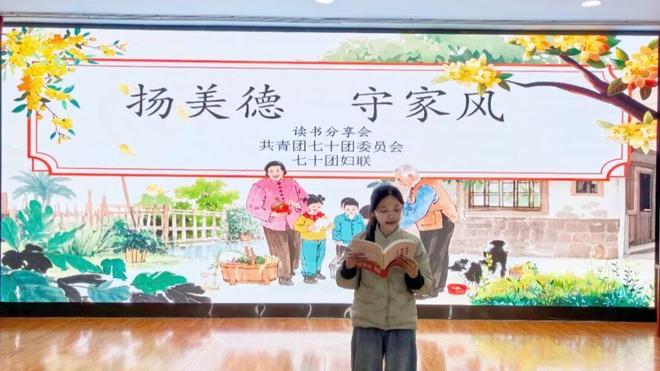 △七十团妇联联合团委开展“扬美德·守家风”家风故事分享活动。现场9名分享者以生动语言、鲜活事例讲述家风故事。
