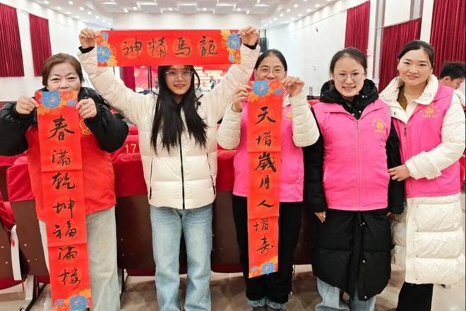 △七十九团妇联带领巾帼志愿者开展“迎春送福”文艺惠民志愿服务活动,共送出春联200余副、“福”字百余张,惠及职工妇女300余人。