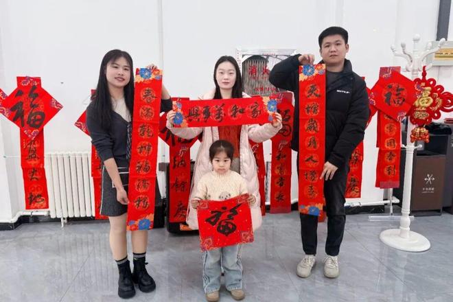 △花城街道军垦路社区妇联开展“红韵润童心 巧手迎新春”寒假儿童关爱活动,辖区50余名青少年及家长参与,在书法和剪纸老师指导下,亲子协作剪窗花、写福字,现场墨香四溢、暖意融融。