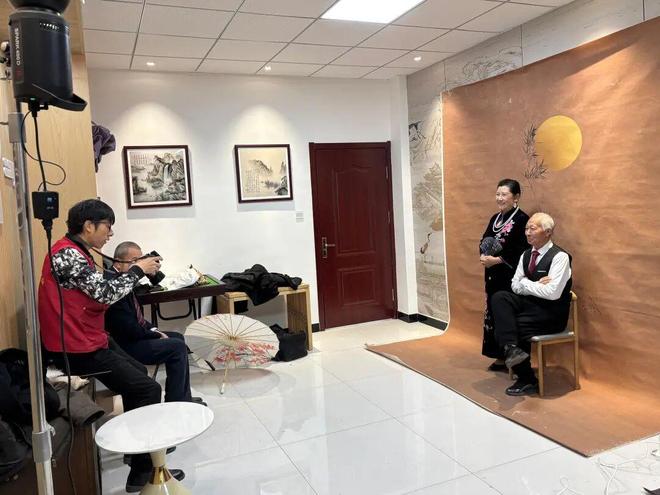镜头前,一幕幕温情瞬间被永久定格:相濡以沫的老夫妻牵手对视,三世同堂的大家庭围坐一堂,欢声笑语中尽显幸福美满。邻里相互帮忙整理服饰、分享拍摄心得,在温馨互动中拉近了心与心的距离。摄影师则耐心引导大家摆出自然姿势,用专业技术捕捉每一个真挚表情和温暖瞬间。“年轻时条件有限,没拍过像样的婚纱照,今天穿上婚纱,感觉又回到了年轻时的模样。”结婚52年的王会芬看着镜中容光焕发的自己,脸上洋溢着羞涩又幸福的笑容。