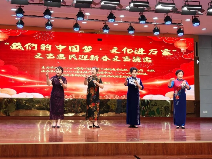 墨香润民心,文艺送祝福。为深入学习贯彻党的二十大和二十届四中全会精神,践行“我们的中国梦·文化进万家”活动要求,大力弘扬中华优秀传统文化,丰富职工群众精神文化生活,营造欢乐祥和、喜庆热烈的新春氛围,1月30日,由十师北屯市妇联联合师市文联、民政局、一八八团海川镇主办,一八八团文体广电旅游中心、星海社区及各文艺协会承办的“我们的中国梦·文化进万家”文艺惠民迎新春演出,在一八八团星海社区四楼火热上演,为辖区职工群众献上了一场精彩纷呈、年味十足的文化盛宴,以巾帼力量传递温暖,凝聚基层奋进力量。