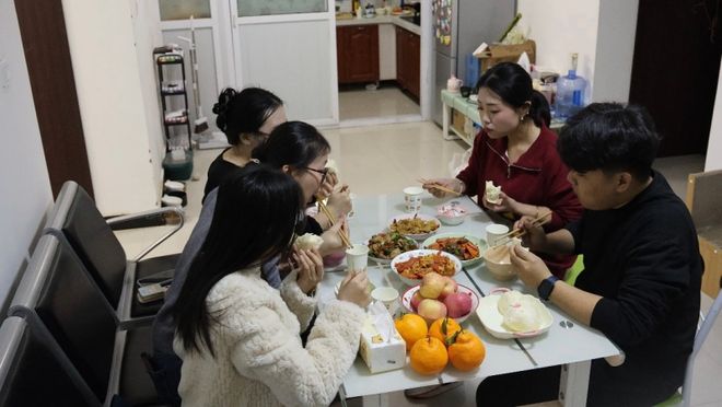 董俊廷拎着从家里带来的特产,钻进厨房帮忙。他比周玥晚来两年,周玥记得他刚来时,被干燥气候折腾得满脸痘痘,想家想得半夜在操场上一圈圈跑步。现在,他的皮肤早已适应,人也结实了不少。