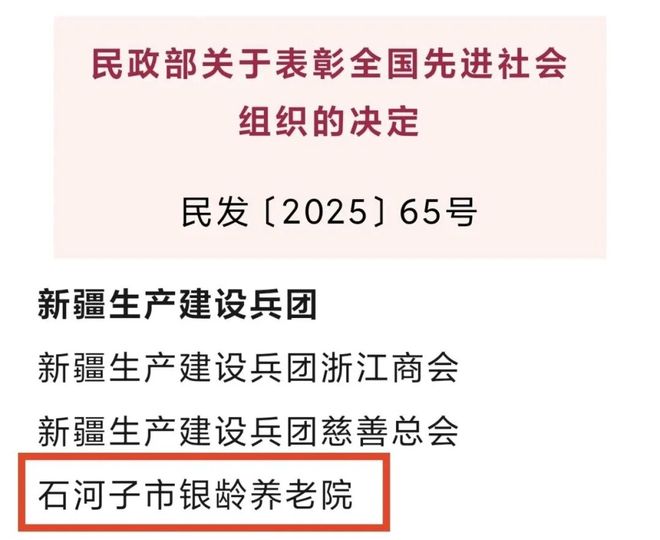石河子市银龄养老院荣获“全国先进社会组织称号”