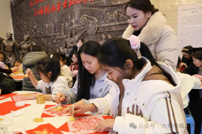 活动伊始,工作人员用通俗易懂的语言,向孩子们讲解马年生肖文化、春节贴福、挂年画等传统习俗,系统介绍拓印技艺的历史渊源、传承脉络与当代价值。工作人员结合实物展示,从碑拓、瓦当拓到年画拓印的演变,从工具使用到纹样寓意,层层拆解,让孩子们直观理解“拓印是留住传统、复刻文明”的非遗智慧,进一步增强文化认同感与自豪感。