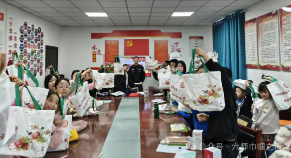 在互动环节,同学们踊跃参与、积极抢答,工作人员为参与竞答的学生发放了定制水杯、民族团结宣传包、法治宣传抽纸等精美小礼品。这不仅是对孩子们积极参与的鼓励,也让法治理念随着小礼品融入了他们的日常生活。