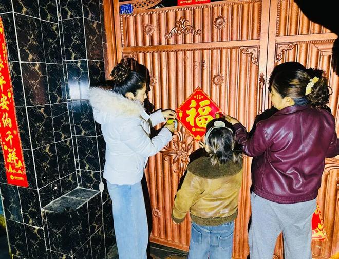 可克达拉市第二幼儿园谢克拉•居来提:我和家人一同贴福字。一张福字,贴出的是年味,更是家风的传承与阖家的安康喜乐。
