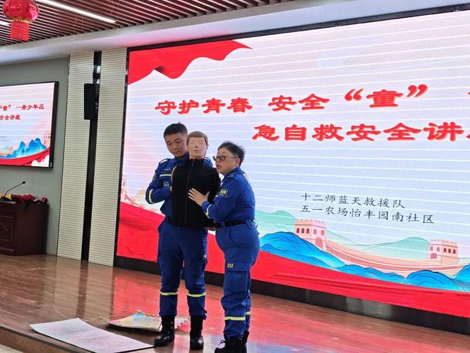 为增强青少年安全防范意识,提高应急自救能力,2月27日,五一农场怡丰园南社区妇联联合十二师蓝天救援队为辖区青少年开展应急自救安全知识讲座。