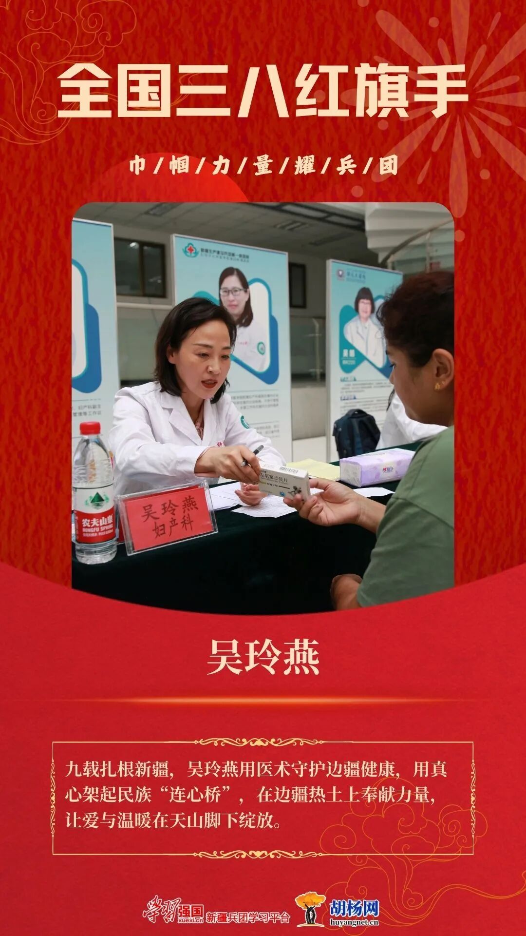 自2017年首次踏上新疆这片热土,吴玲燕便与这里结下了不解之缘。九载春秋,她三批接续援疆,从江南烟雨奔赴西北长风,以医者仁心践行使命,以巾帼担当书写忠诚,在新疆生产建设兵团大地上绘就医疗帮扶、民生改善、民族团结的动人画卷。如今,身兼兵团第一师医院副院长、浙江医疗人才“组团式”援疆副领队的她,已然成为推动师市卫生健康与妇女儿童事业高质量发展的中坚力量,先后斩获全国民族团结进步模范先进个人、自治区先进工作者、全国三八红旗手等多项殊荣。
