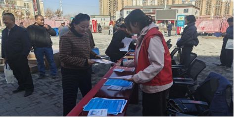 招聘会现场气氛热烈,农场妇联组织巾帼志愿者值守咨询桌,主动上前为前来求职的广大妇女群众答疑解惑、发放宣传资料,提供精准贴心服务。