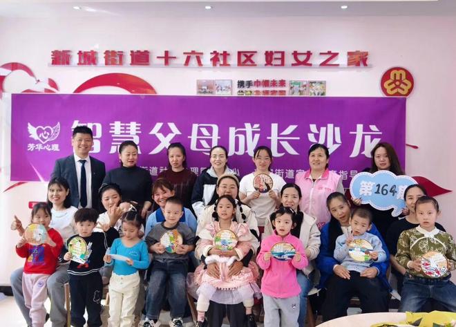 这是新城街道十六社区妇联联合芳华心理服务中心举办的“智慧父母成长沙龙”亲子活动现场。当天,8对家长与幼儿在专业课堂、趣味游戏和创意手工中,共同度过了一段温馨而有意义的时光。