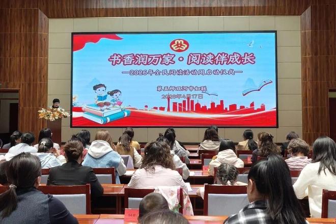 为全面落实习近平总书记关于注重家庭家教家风建设、推动全民阅读的重要指示精神,进一步深化”书香飘万家”家庭阅读活动,丰富广大妇女儿童和家庭的精神文化生活,营造爱读书、读好书、善读书的良好社会风尚,4月17日,五师双河市妇联举办2026年全民阅读活动周启动仪式。各单位妇联主席、妇委会主任及家长、儿童代表共80余人参加活动。