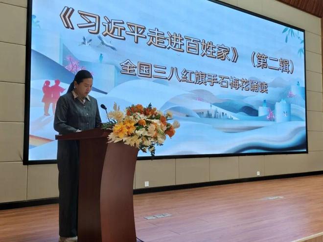 全国三八红旗手石梅花现场领读《习近平走进百姓家》(第二辑),带领大家感悟为民情怀、汲取奋进力量。活动还向各单位妇联赠送相关书籍,向亲子家庭代表赠送绘本,把书香与关爱送到千家万户。