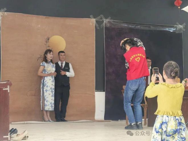 活动现场,温馨的拍摄场地布置、多样的服装选择,为活动增添了浪漫气息。既有西式婚纱与西装,也有传统中式旗袍和特色民族服饰,彰显出别具一格的中国特色。化妆师细致地为老人们挑选衣服、化妆、做造型,摄影师则耐心指导每对夫妻摆出甜蜜姿势,记录下一个个温馨动人的瞬间。